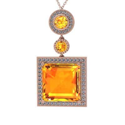 Sitrin ve beyaz zirkon 925 ayar rose altın kaplama gümüş kolye (40 cm rose altın rolo zincir)