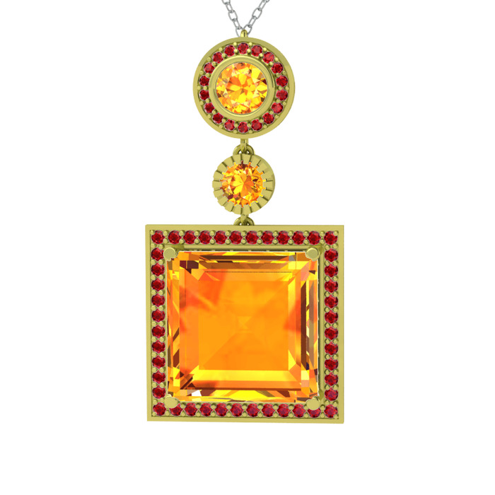 Sitrin ve garnet 14 ayar altın kolye (40 cm gümüş rolo zincir)