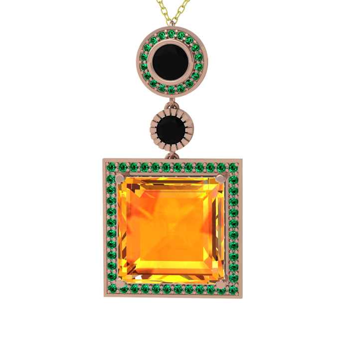 Sitrin, siyah zirkon ve yeşil kuvars 8 ayar rose altın kolye (40 cm altın rolo zincir)