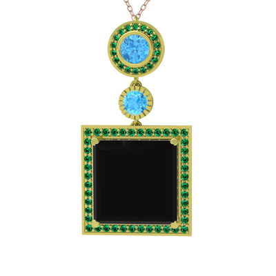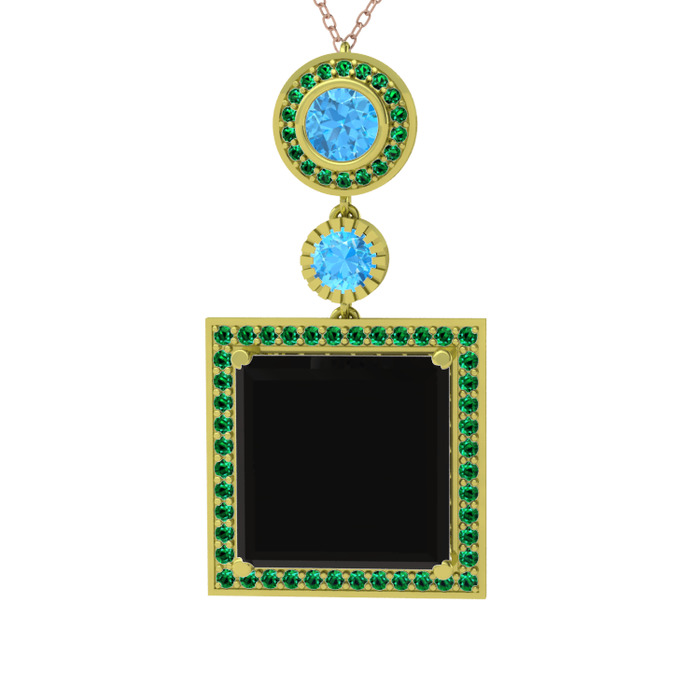 Siyah zirkon, akuamarin ve yeşil kuvars 925 ayar altın kaplama gümüş kolye (40 cm gümüş rolo zincir)
