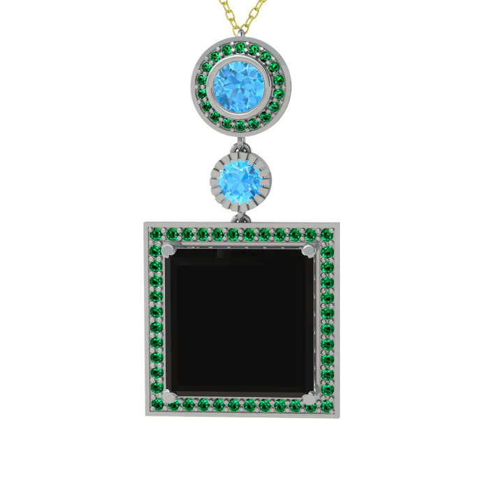 Siyah zirkon, akuamarin ve yeşil kuvars 925 ayar gümüş kolye (40 cm altın rolo zincir)