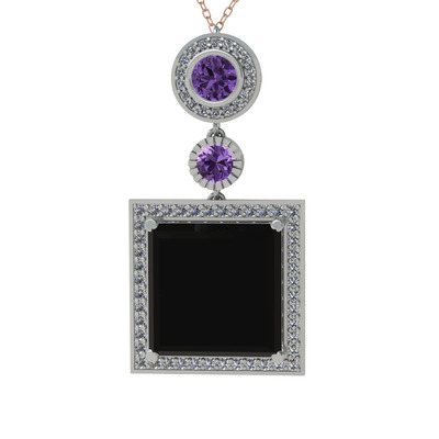 Siyah zirkon, ametist ve beyaz zirkon 925 ayar gümüş kolye (40 cm rose altın rolo zincir)