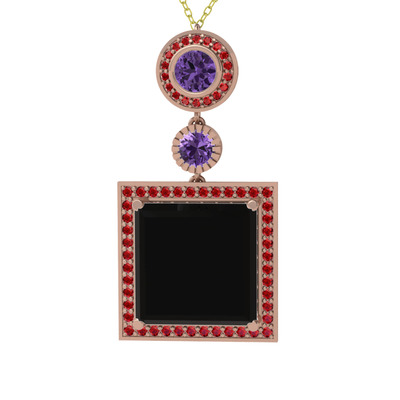 Siyah zirkon, ametist ve garnet 8 ayar rose altın kolye (40 cm altın rolo zincir)