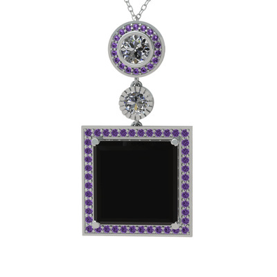 Siyah zirkon, beyaz zirkon ve ametist 14 ayar beyaz altın kolye (40 cm beyaz altın rolo zincir)