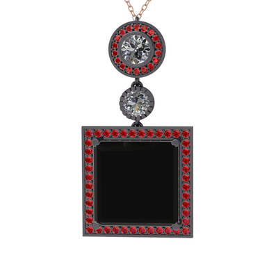 Siyah zirkon, beyaz zirkon ve garnet 925 ayar siyah rodyum kaplama gümüş kolye (40 cm rose altın rolo zincir)