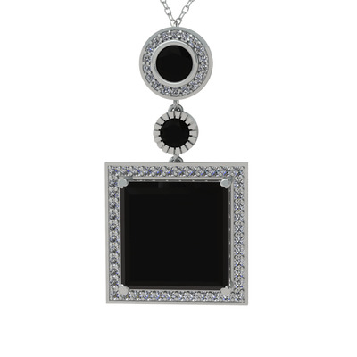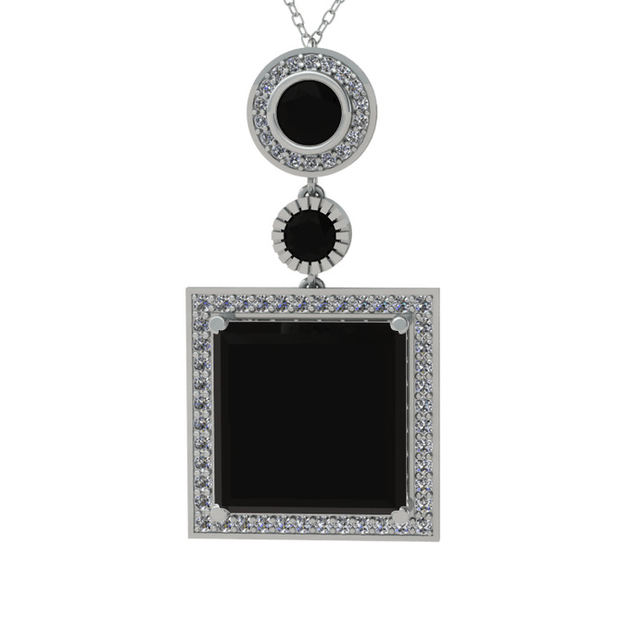 Siyah zirkon ve beyaz zirkon 925 ayar gümüş kolye (40 cm beyaz altın rolo zincir)