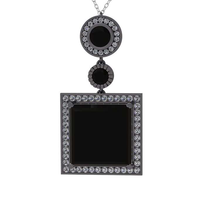 Siyah zirkon ve beyaz zirkon 925 ayar siyah rodyum kaplama gümüş kolye (40 cm beyaz altın rolo zincir)