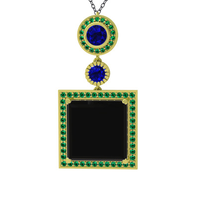 Siyah zirkon, lab safir ve yeşil kuvars 8 ayar altın kolye (40 cm gümüş rolo zincir)