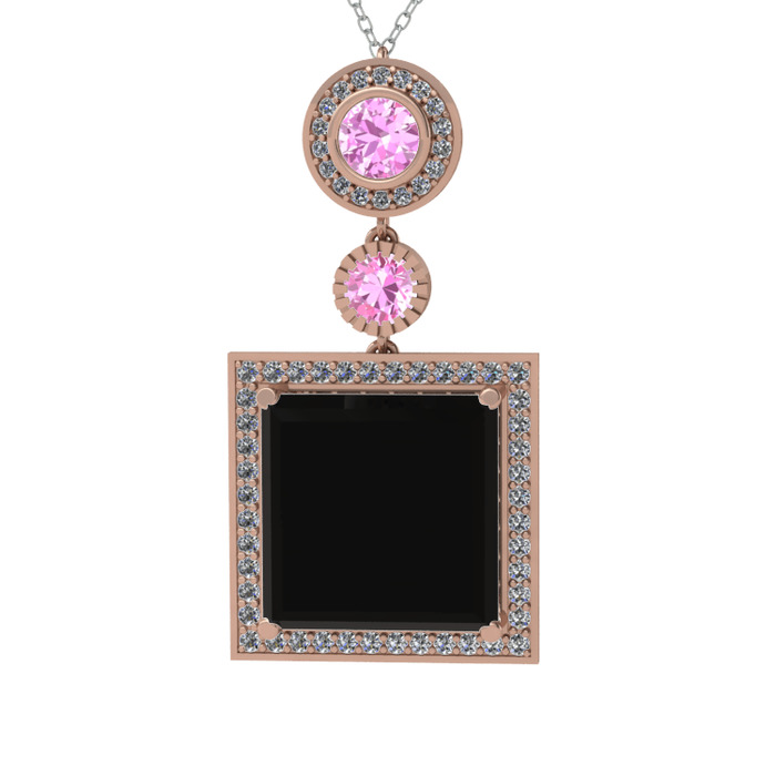Siyah zirkon, pembe kuvars ve beyaz zirkon 14 ayar rose altın kolye (40 cm beyaz altın rolo zincir)
