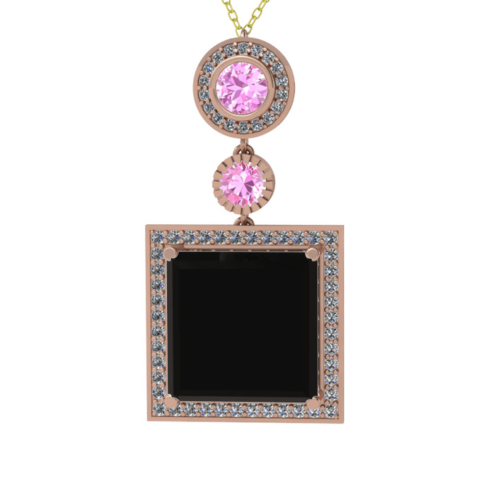 Siyah zirkon, pembe kuvars ve beyaz zirkon 18 ayar rose altın kolye (40 cm gümüş rolo zincir)