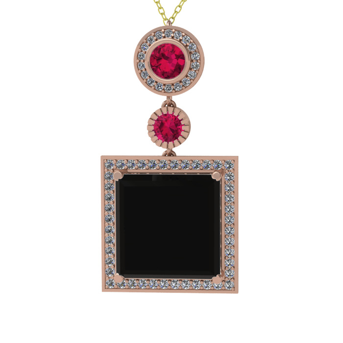 Siyah zirkon, rodolit garnet ve beyaz zirkon 14 ayar rose altın kolye (40 cm altın rolo zincir)