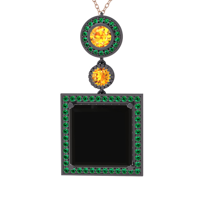Siyah zirkon, sitrin ve yeşil kuvars 925 ayar siyah rodyum kaplama gümüş kolye (40 cm gümüş rolo zincir)