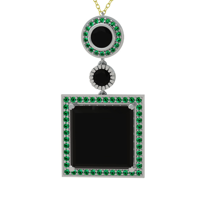 Siyah zirkon ve yeşil kuvars 925 ayar gümüş kolye (40 cm altın rolo zincir)