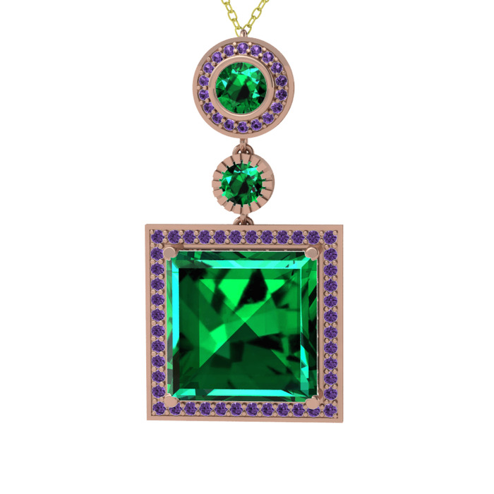 Yeşil kuvars ve ametist 18 ayar rose altın kolye (40 cm gümüş rolo zincir)