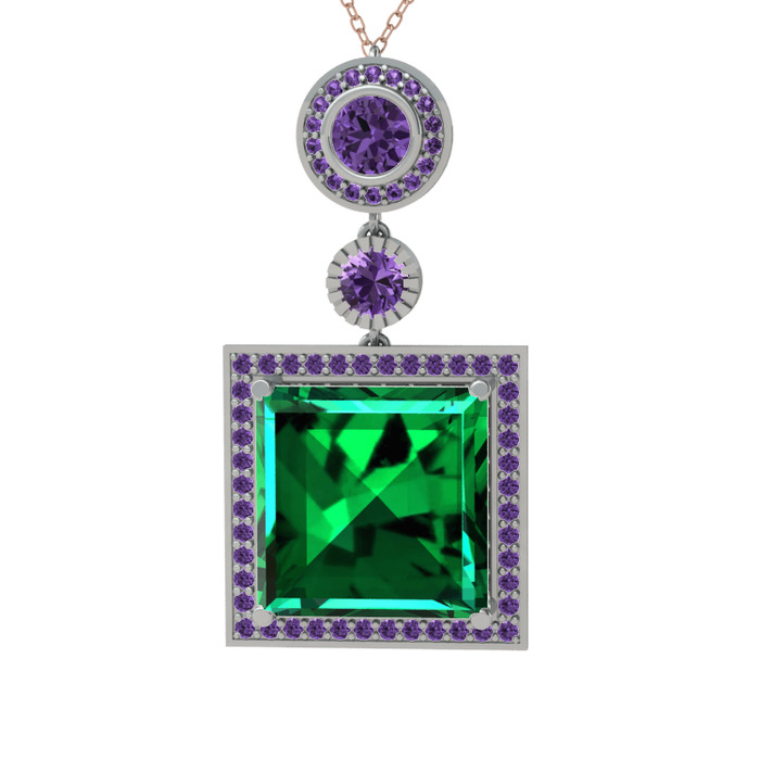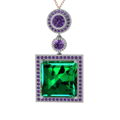 Yeşil kuvars ve ametist 925 ayar gümüş kolye (40 cm gümüş rolo zincir)