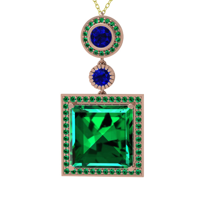 Yeşil kuvars ve lab safir 18 ayar rose altın kolye (40 cm gümüş rolo zincir)