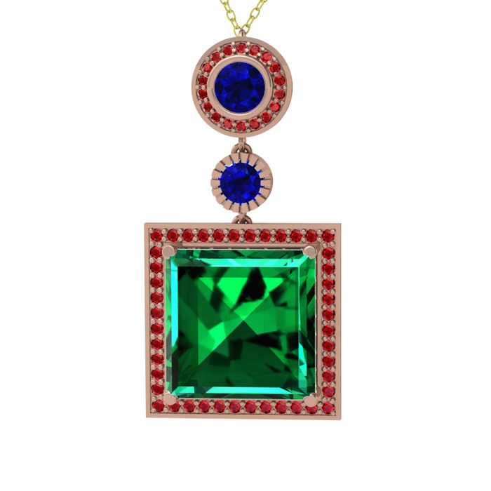 Yeşil kuvars, lab safir ve garnet 8 ayar rose altın kolye (40 cm gümüş rolo zincir)