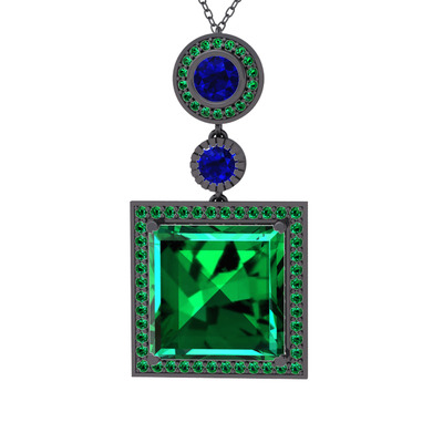 Yeşil kuvars ve lab safir 925 ayar siyah rodyum kaplama gümüş kolye (40 cm gümüş rolo zincir)