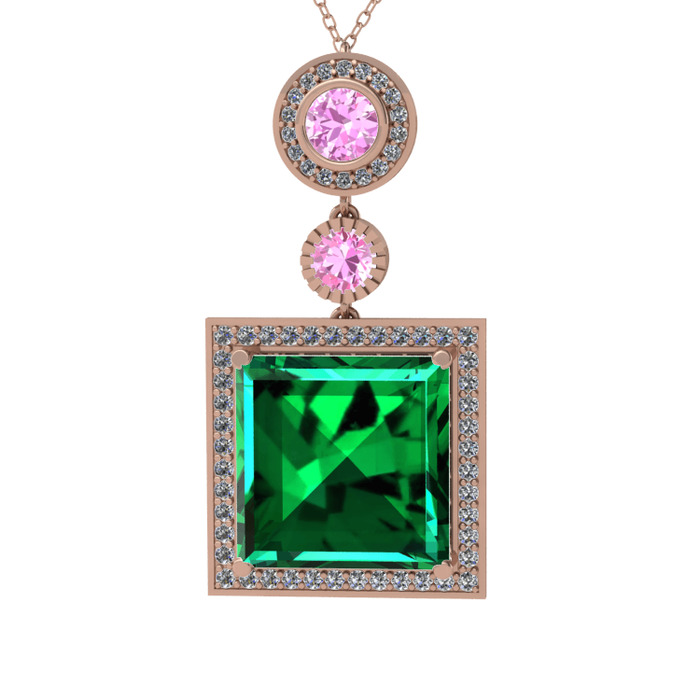 Yeşil kuvars, pembe kuvars ve beyaz zirkon 8 ayar rose altın kolye (40 cm rose altın rolo zincir)