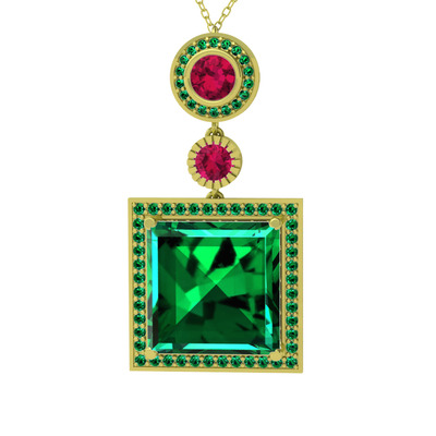 Yeşil kuvars ve rodolit garnet 14 ayar altın kolye (40 cm altın rolo zincir)