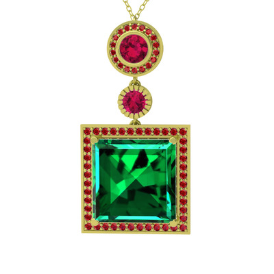 Yeşil kuvars, rodolit garnet ve garnet 14 ayar altın kolye (40 cm gümüş rolo zincir)