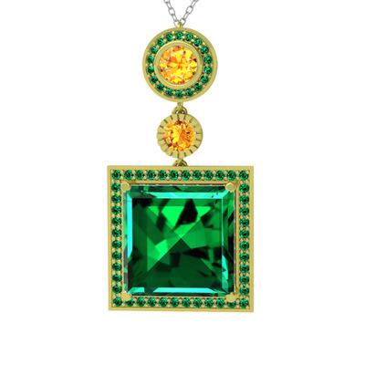Yeşil kuvars ve sitrin 14 ayar altın kolye (40 cm gümüş rolo zincir)