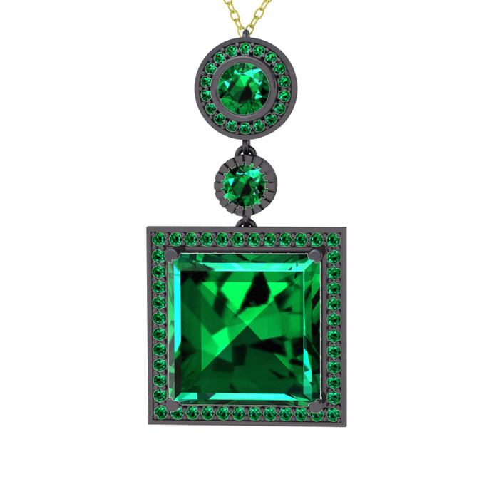 Yeşil kuvars 925 ayar siyah rodyum kaplama gümüş kolye (40 cm gümüş rolo zincir)