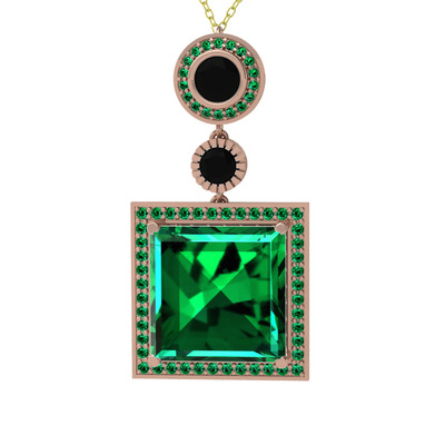 Yeşil kuvars ve siyah zirkon 8 ayar rose altın kolye (40 cm altın rolo zincir)
