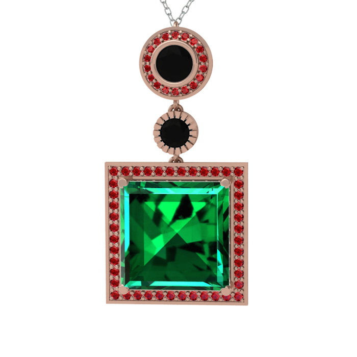 Yeşil kuvars, siyah zirkon ve garnet 14 ayar rose altın kolye (40 cm beyaz altın rolo zincir)