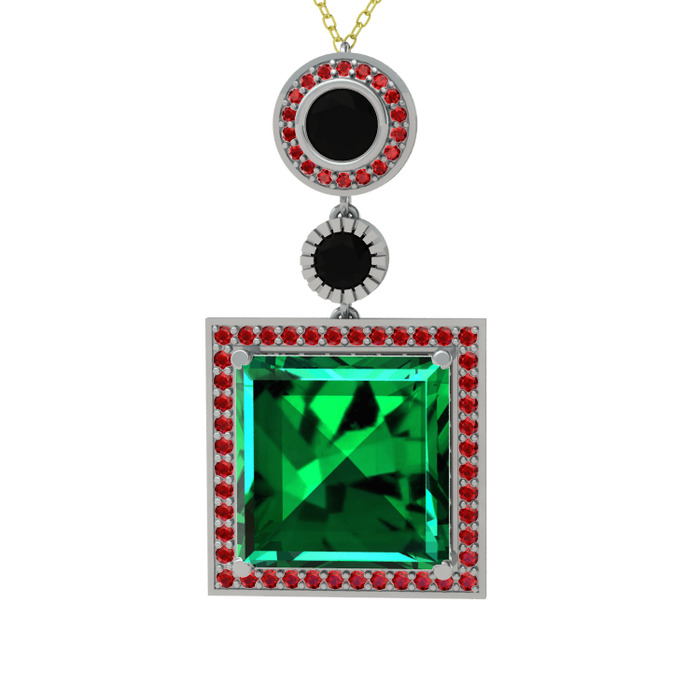 Yeşil kuvars, siyah zirkon ve garnet 8 ayar beyaz altın kolye (40 cm gümüş rolo zincir)
