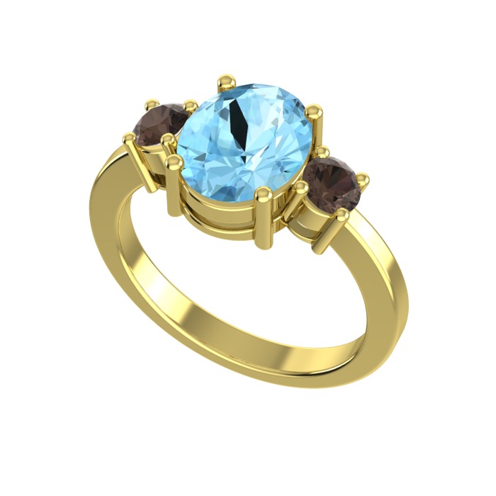 Akuamarin ve dumanlı kuvars 8 ayar altın yüzük