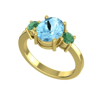 Akuamarin ve kök zümrüt 8 ayar altın yüzük