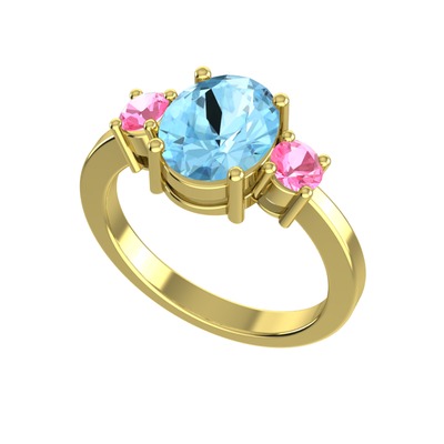 Akuamarin ve pembe kuvars 925 ayar altın kaplama gümüş yüzük