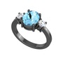 Akuamarin ve pırlanta 925 ayar siyah rodyum kaplama gümüş yüzük (0.48 karat)