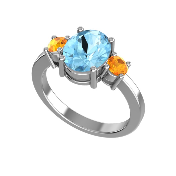 Akuamarin ve sitrin 8 ayar beyaz altın yüzük