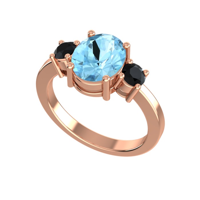 Akuamarin ve siyah zirkon 14 ayar rose altın yüzük
