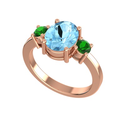 Akuamarin ve yeşil kuvars 8 ayar rose altın yüzük