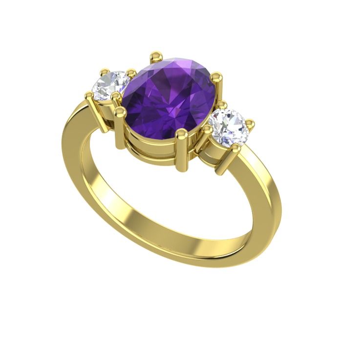 Ametist ve beyaz zirkon 18 ayar altın yüzük