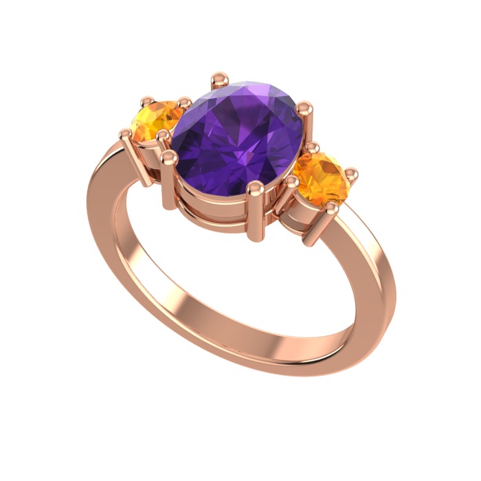 Ametist ve sitrin 18 ayar rose altın yüzük
