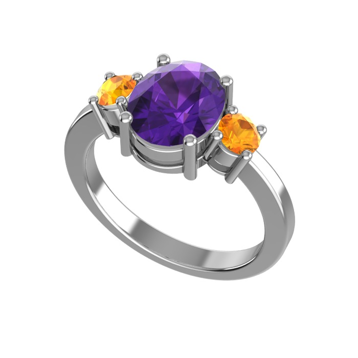 Ametist ve sitrin 925 ayar gümüş yüzük