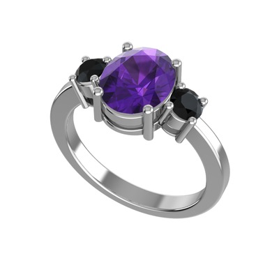 Ametist ve siyah zirkon 14 ayar beyaz altın yüzük