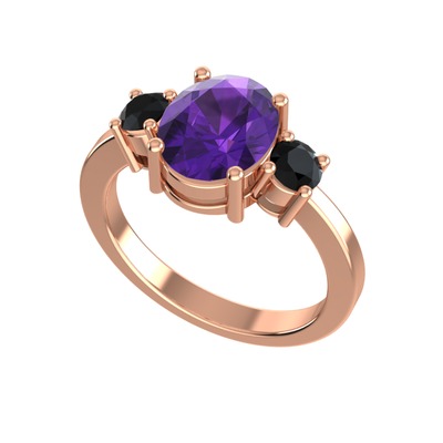 Ametist ve siyah zirkon 8 ayar rose altın yüzük