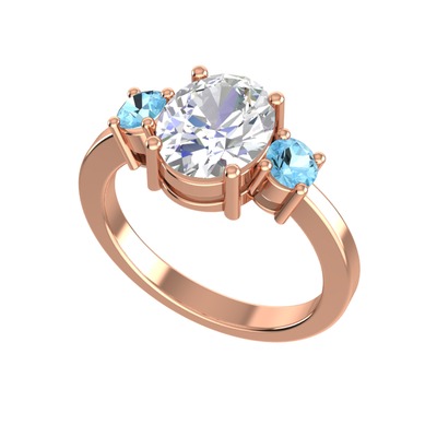 Beyaz zirkon ve akuamarin 8 ayar rose altın yüzük