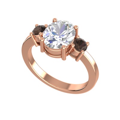 Beyaz zirkon ve dumanlı kuvars 8 ayar rose altın yüzük