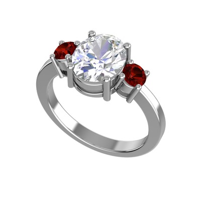 Beyaz zirkon ve garnet 8 ayar beyaz altın yüzük