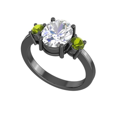 Beyaz zirkon ve peridot 925 ayar siyah rodyum kaplama gümüş yüzük