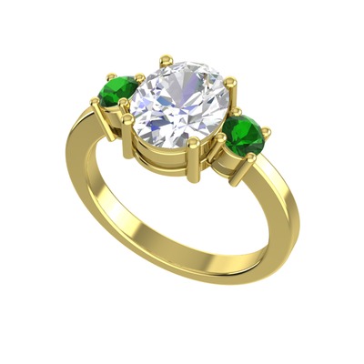Beyaz zirkon ve yeşil kuvars 14 ayar altın yüzük