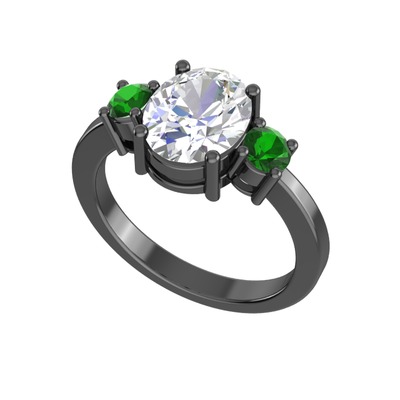 Beyaz zirkon ve yeşil kuvars 925 ayar siyah rodyum kaplama gümüş yüzük