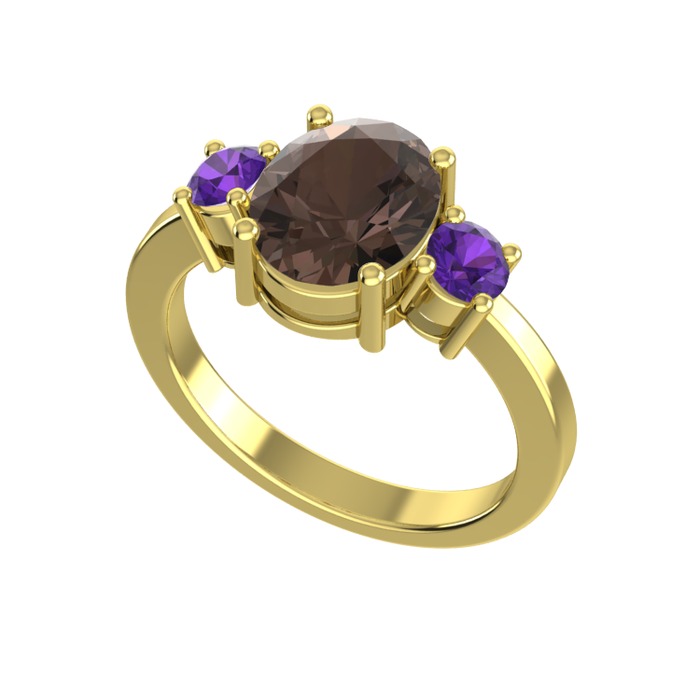 Dumanlı kuvars ve ametist 18 ayar altın yüzük