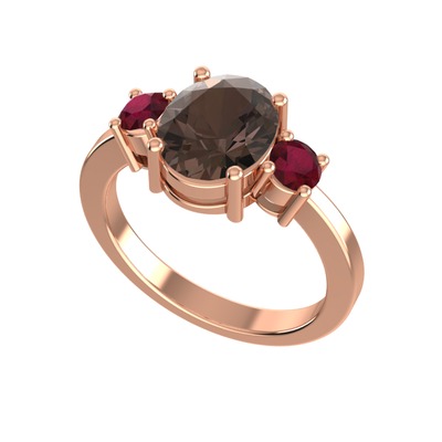 Dumanlı kuvars ve kök yakut 14 ayar rose altın yüzük
